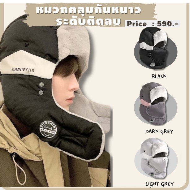 หมวกคลุมกันหนาว ระดับติดลบ พร้อมที่ปิดปากกันลม