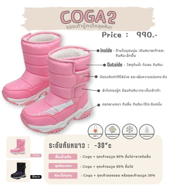 3 สี | เบอร์ 25-34. บู๊ทเด็กกันหนาว รุ่นยาวหุ้มข้อ กันหนาวได้ดี ป้องกันหิมะเข้าบู๊ท ด้านในบุขนนุ่มมาก เดินสบายไม่กัดเท้า ให้ความอุ่นพร้อมป้องกันหิมะ