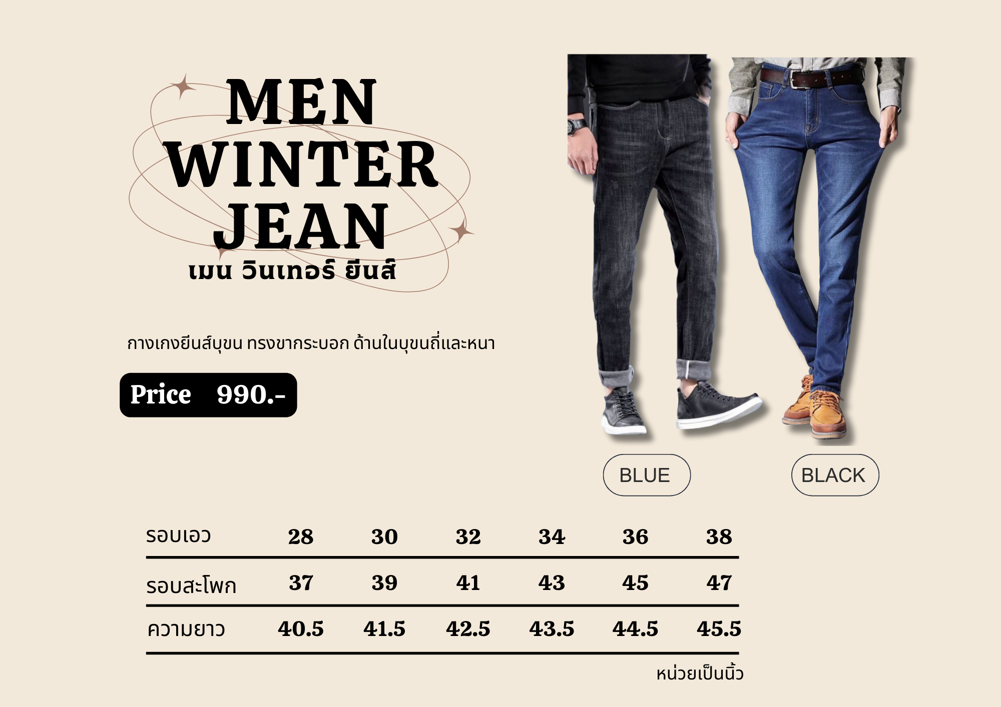 2สี | 28"-38" ยีนส์กันหนาวผู้ชาย ด้านนอกเท่ห์ ด้านใน อุ๊นนนนน.....อุ่น "ข้างนอกเท่ห์...ข้างในอุ่น"