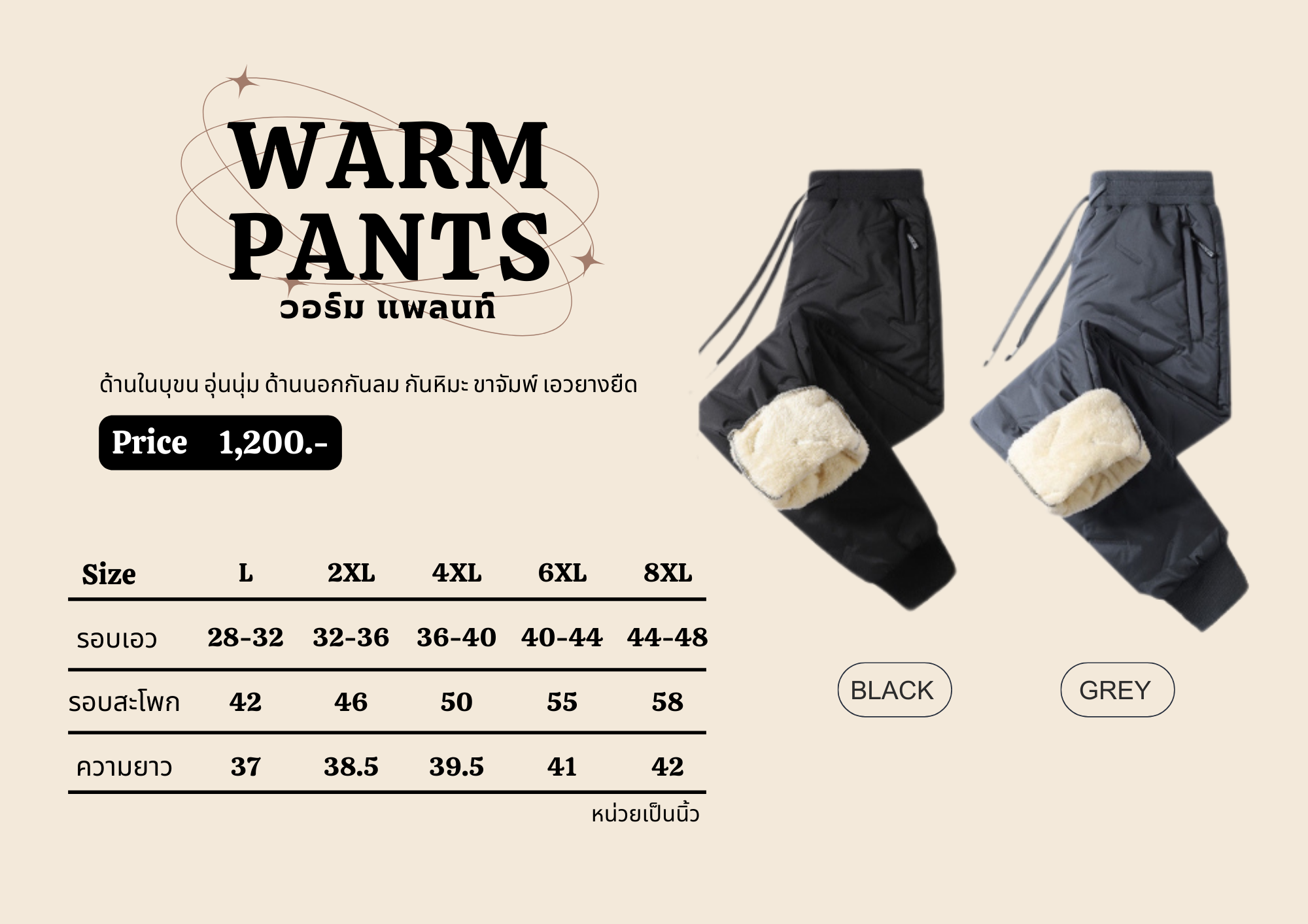 กางเกงวอร์มกันหนาว บุขนด้านใน กันหนาวระดับติดลบ