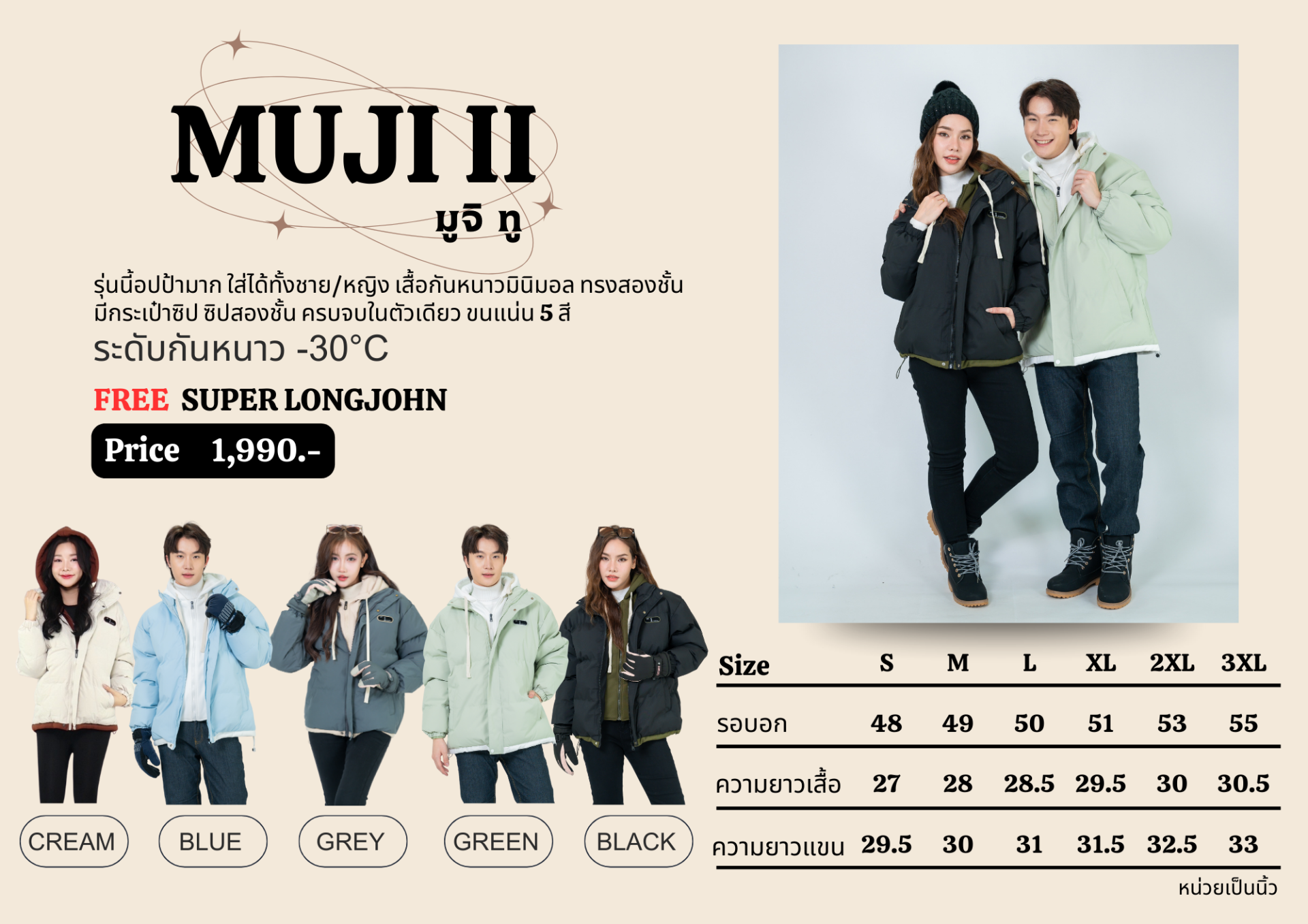 ► รุ่น MUJI II (Unisex ใส่ได้ทั้งหญิงและชาย)
