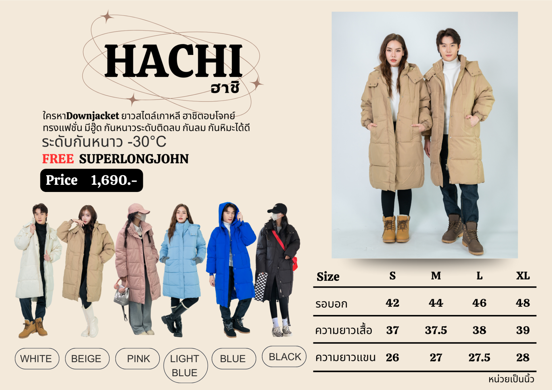 รุ่น HACHI❗️ 4 สี ทรงยาวเกาหลี กำลังฮิตมากค่ะ สีก็น่ารัก ใส่เดินในเมืองหรือใส่ถ่ายกกกับหิมะ กันหนาวได้ถึงระดับติดลบ -25 องศา พร้อมลุย เบามากค่ะ ใส่กับถุงสุญแบนเหลือนิดเดียว คุ้มมากเมื่อได้แถม ซูเปอร์ลองจอน มีทั้งหมด 4 สี สีพาสเทลน่ารักๆทั้งนั้นเลย