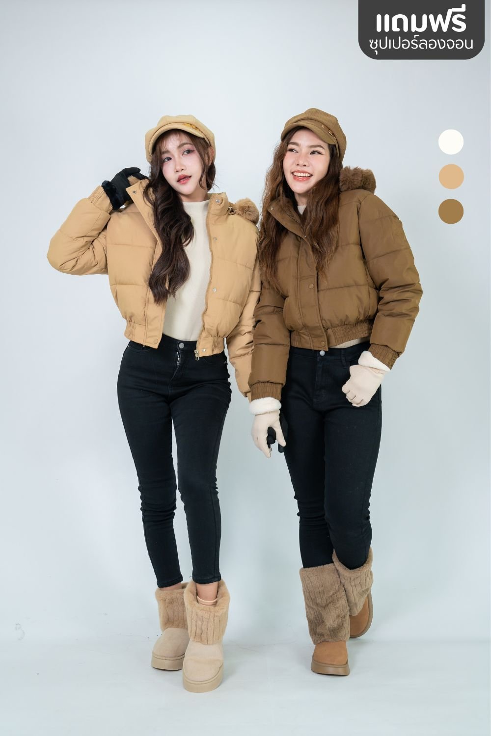 (FREE SIZE) (อก46") 3 สี ขนเฟอร์เล่นสีกับเสื้อ แมทช์กับขายาวเอวสูง ขาดูยาวสวยมาก ใส่ไม่พอง ขนเฟอร์ถอดได้ เข้ารูป. คุ้มมากเมื่อได้แถม ซูเปอร์ลองจอน