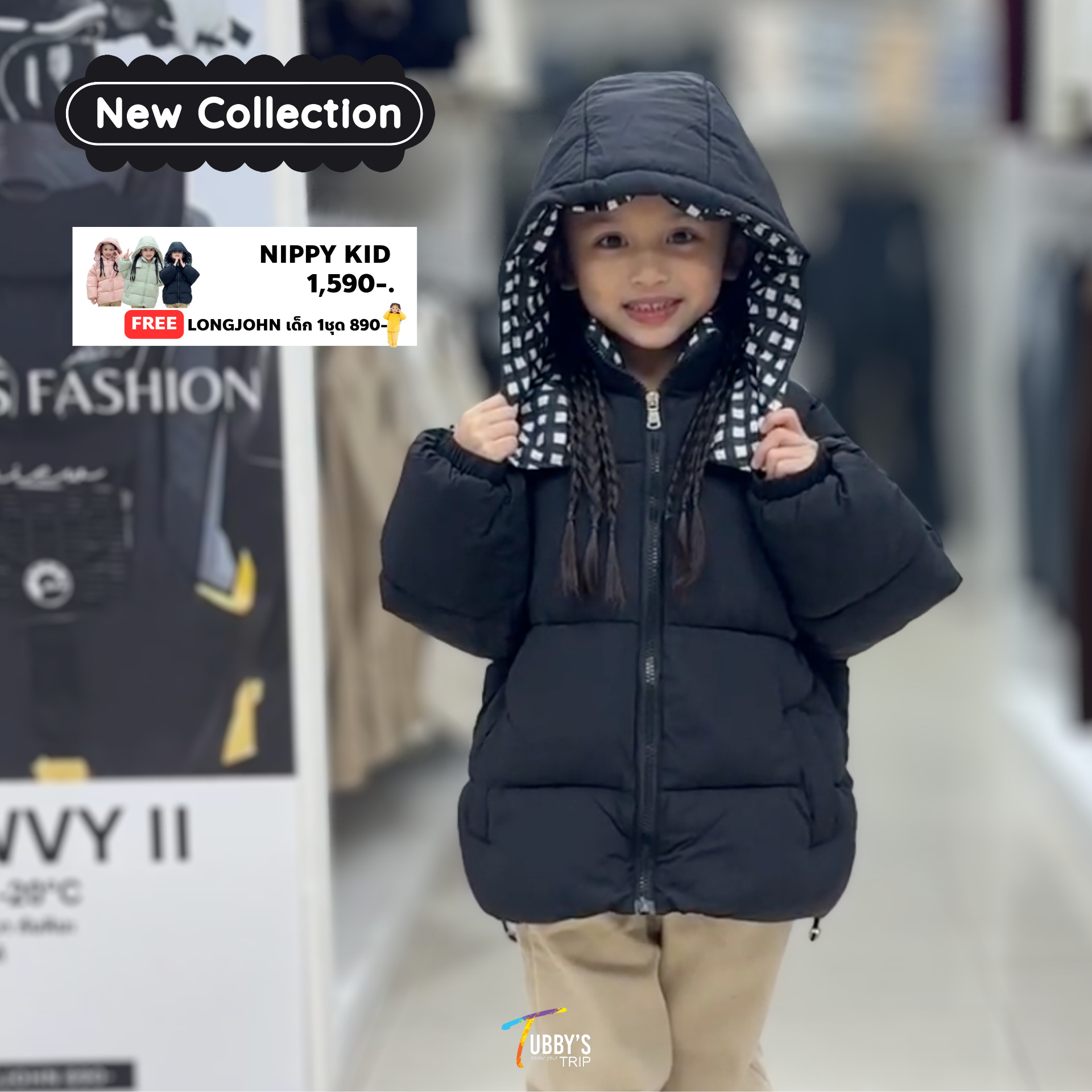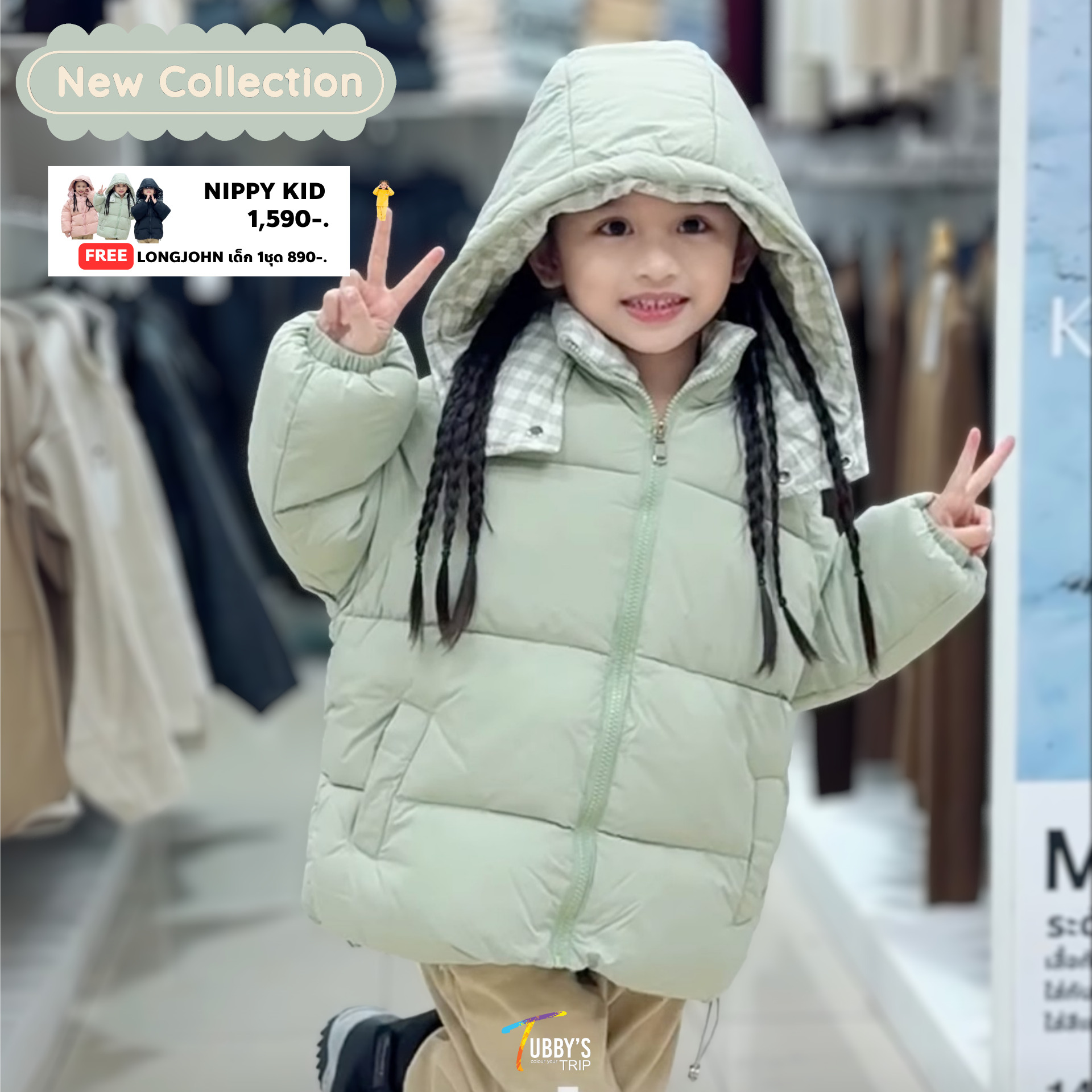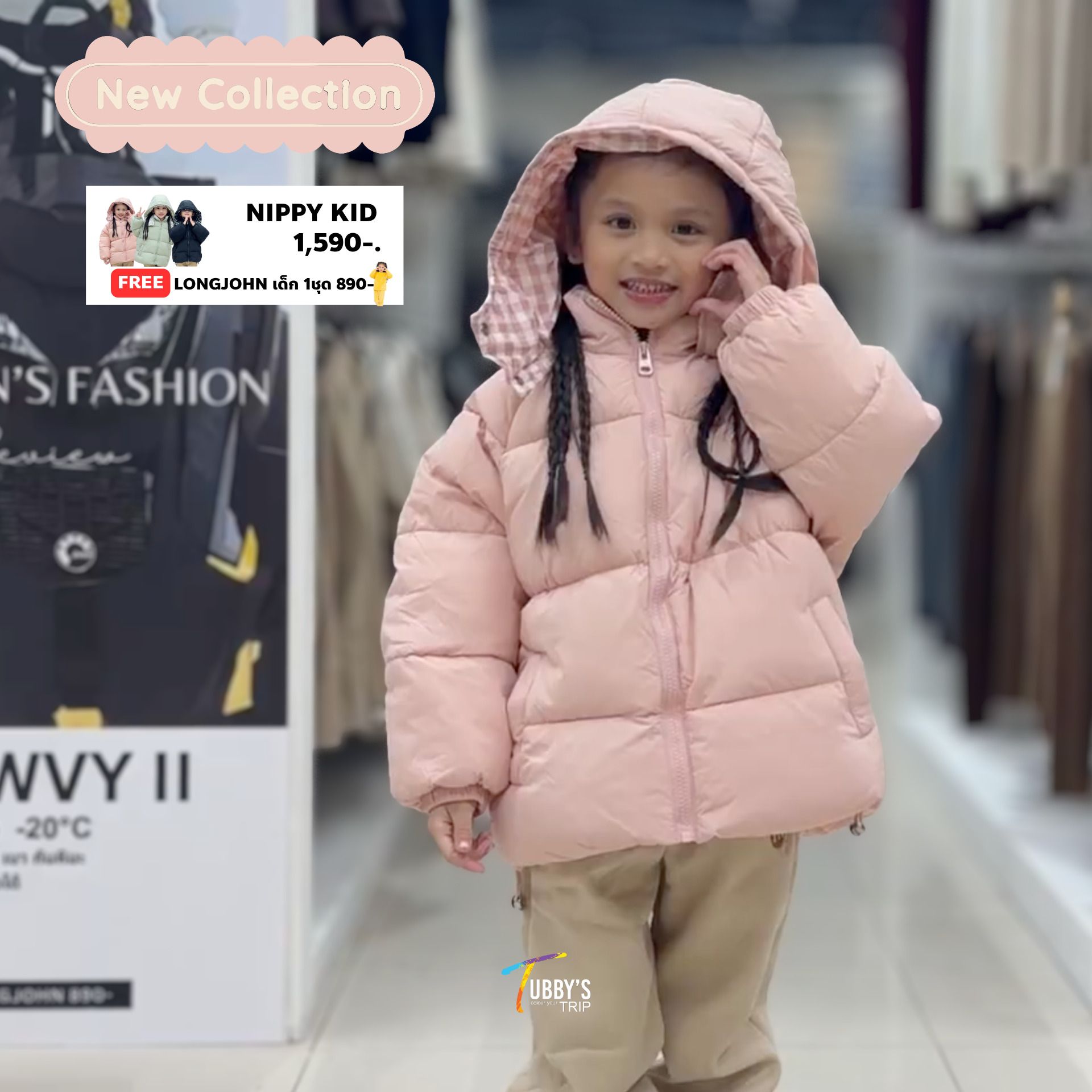 NIPPY KID ชุดกันหนาวเด็ก สีพาสเทล ฮู๊ดลายBurberry กันหนาวได้ -15 องศา กันหิมะ กันลม