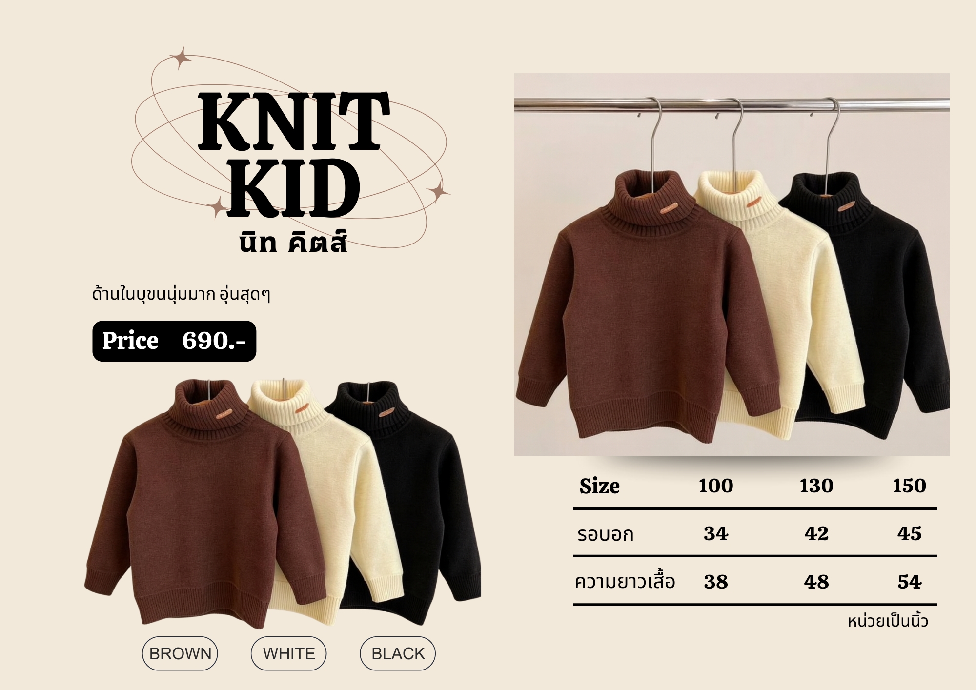 3 สี | ไหมพรมเด็กคอเต่า นุ่มมากกก